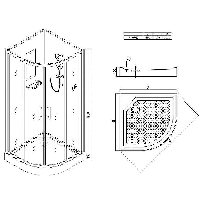 - Тип поддона: низкий, 150 мм.