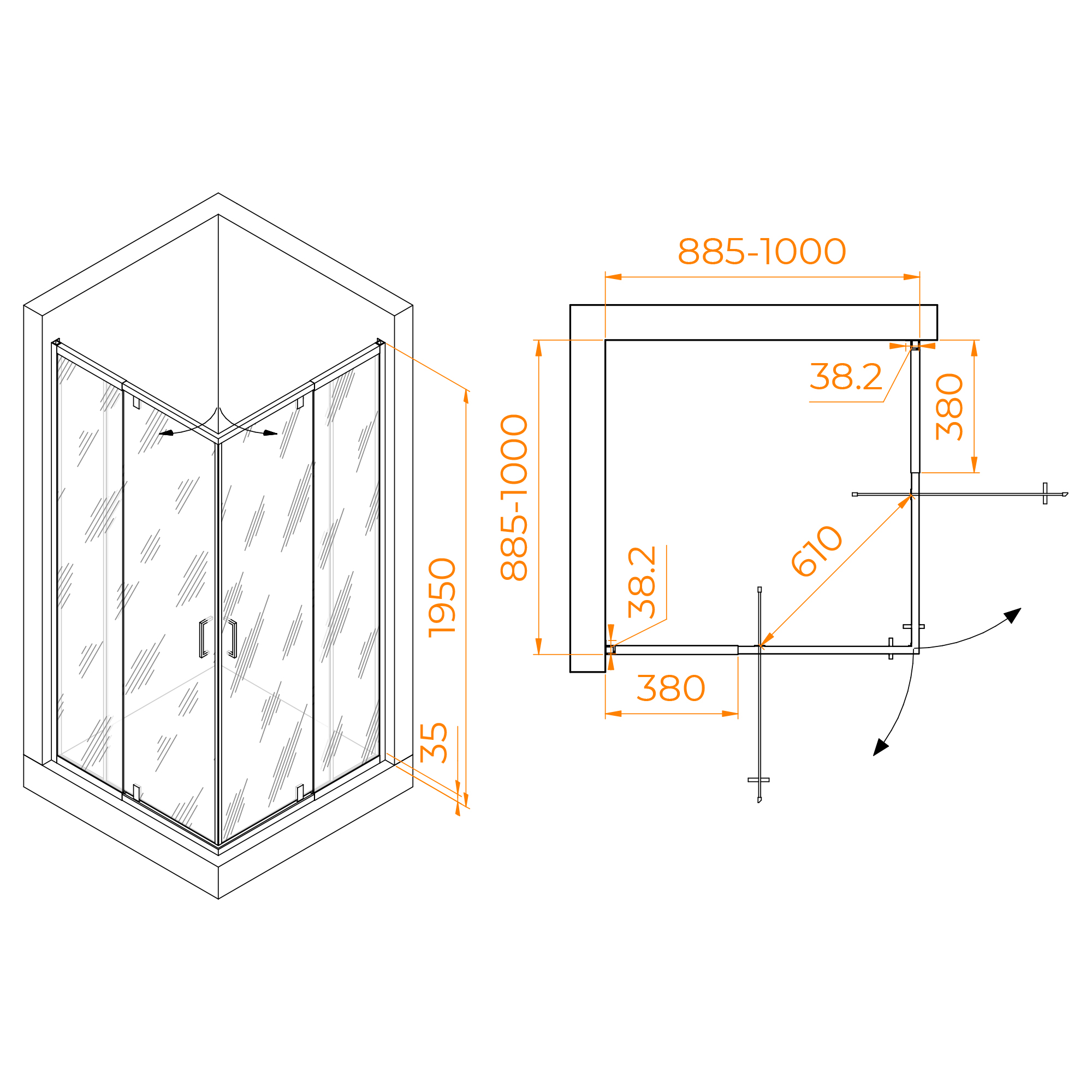 - Размеры (ШхВхД): 1000х1950х1000 мм.
