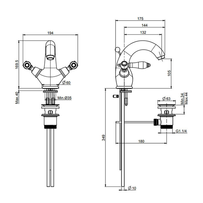 Смеситель Fima Carlo Frattini Spillo Up F3031/XHXSOR для раковины, высота 295 мм., излив 167 мм., с донным клапаном click-clack, цвет золото