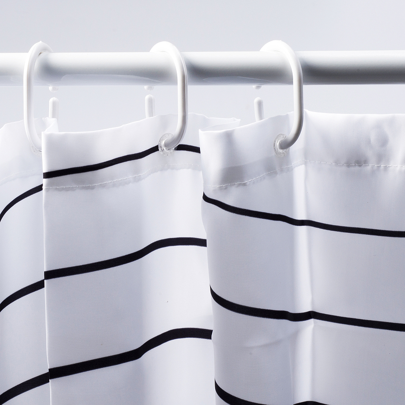 Навесная штора 180 см ширину, с 12 отверстиями под кольца,из материала полиэстр защитит от воды и подчеркнет общий вид санузла.