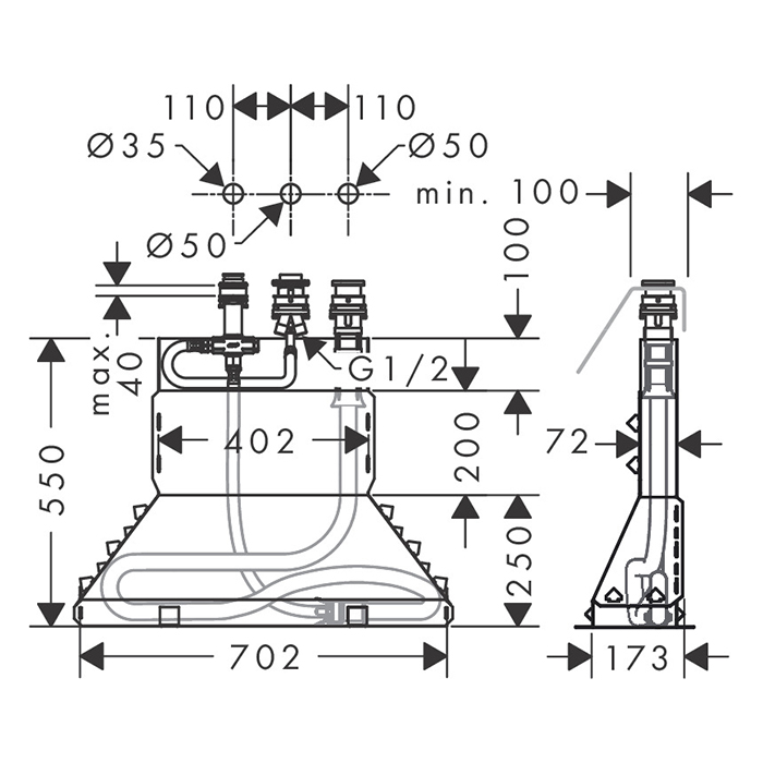 Axor Starck 15485180, Скрытая часть для смесителя на борт ванны, на 3 отверстия