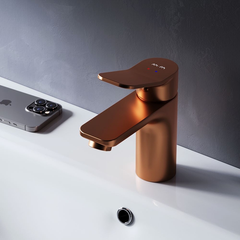 Нежный оттенок розового золота получается методом вакуумного напыления смеси 24-каратного золота, серебра и меди, в процессе которого микрочастицы сплава образуют стойкое соединений с латунной основой. Идеальная геометрия, разработанная по стандарту SA (Smart Angle) – математически выверенное соотношение высоты смесителя, длины излива и наклона корпуса для удобного использования на раковине размером от 50 до 120 см.