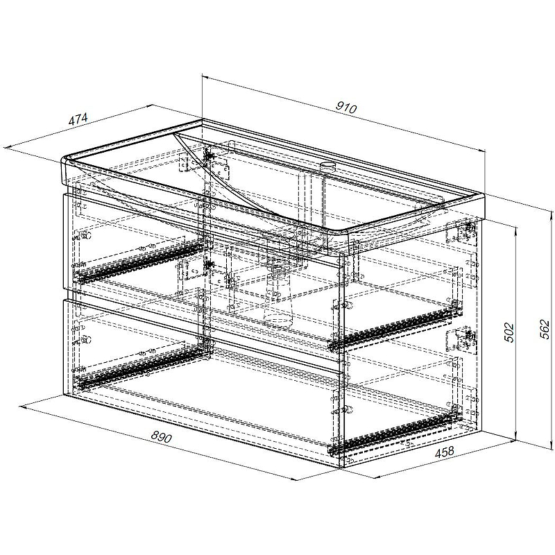 - Габариты корпуса тумбы (ШxВxГ): 890х502х458.