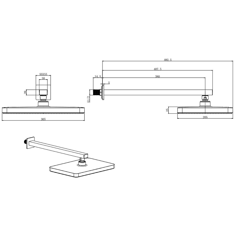 - Размер верхнего душа (ШхД): 305х205 мм.